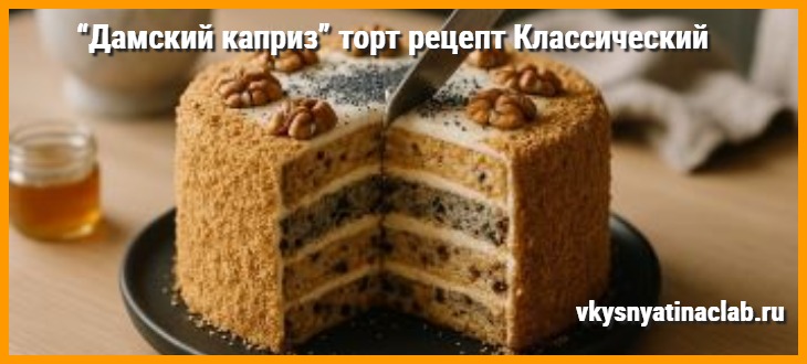 - “Дамский каприз” торт классический рецепт – готов. Приятного аппетита!