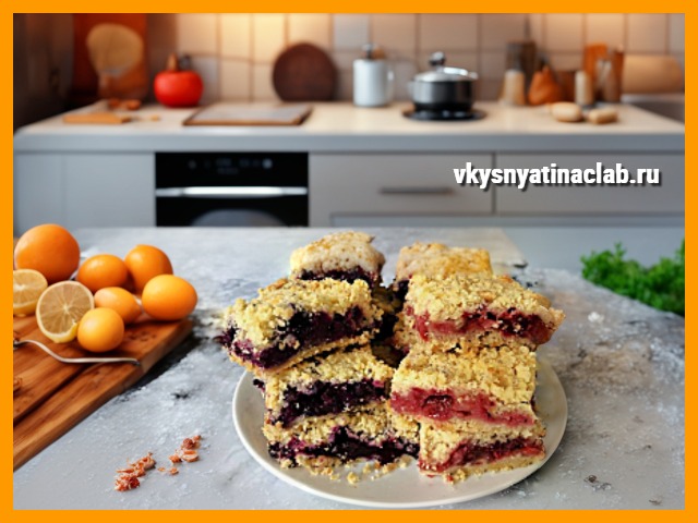 - Выпечка: выпекать печенье в разогретой духовке 15-20 минут, пока оно не приобретет золотистый оттенок. Остудить печенье на противне, затем аккуратно разрезать на небольшие кубики, ромбики или полоски. Посыпать печенье сахарной пудрой.