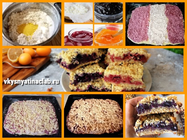 - Сделать начинку: в миске размять творог вилкой. Добавить джем и тщательно перемешать, если начинка жидковатая, то добавить 2-3 ложки крахмала. (Я взяла 3 вида джема – яблочный, смородиновый и вишнёвый)