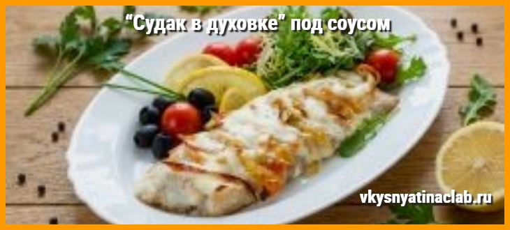 - Судак в духовке под соусом – готов. Приятного аппетита!