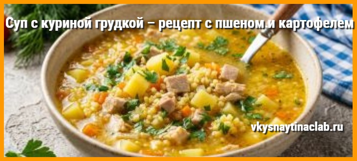 - Суп с куриной грудкой рецепт — с пшеном и картофелем – готов. Приятного аппетита!
