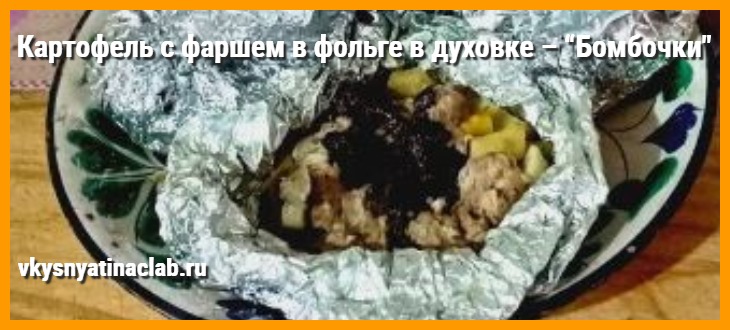 - Картофель с фаршем в фольге в духовке “Бомбочки” – готова. Приятного аппетита!