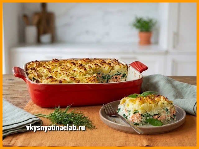 “Картофельно-рыбная запеканка” — это тот случай, когда простота ингредиентов даёт изысканный результат. Блюдо получается сытным, нежным и при этом совсем не тяжёлым. Филе белой и красной рыбы томится в ароматном сливочно-луковом соусе со шпинатом и лимоном, а сверху всё это великолепие укрывается мягким картофельным слоем с румяной корочкой. Если вы ищете запеканку из рыбы с картофелем — читайте ниже.